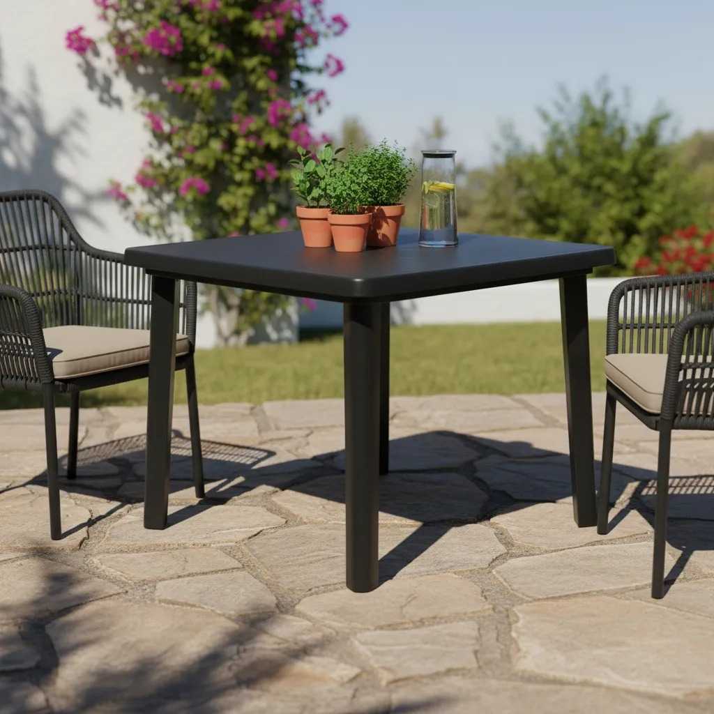 Mesa plástica de formato cuadrado diseñada para ofrecer máxima estabilidad y versatilidad. Su estructura ligera permite un fácil desplazamiento, siendo la solución ideal para jardines, terrazas, eventos masivos, cafeterías o como mesa auxiliar en el hogar.