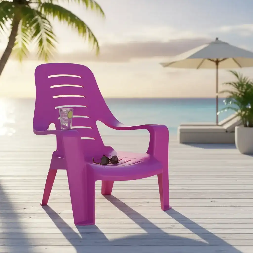 Silla de descanso ergonómica diseñada para ofrecer una posición relajada y confortable. Fabricada en polipropileno de alta densidad mediante inyección monoblock, este modelo destaca por su silueta estilizada y su resistencia excepcional en entornos de alta exposición como playas y piscinas.